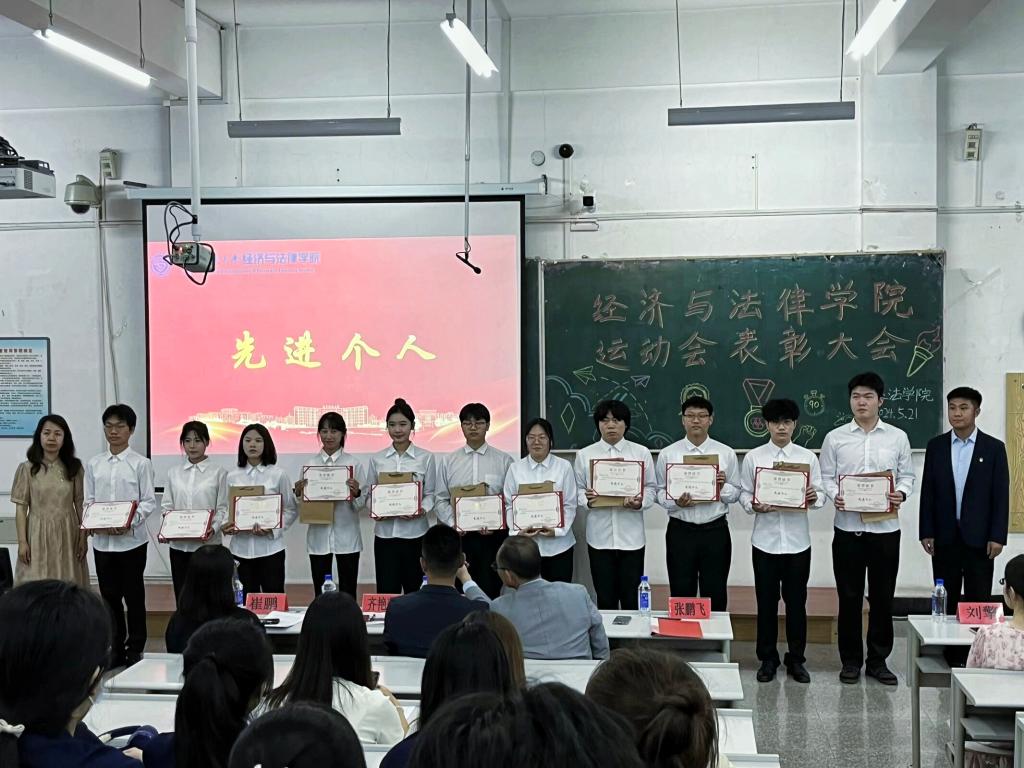 5月21日晚,经法学院于博学楼C102召开第五十二届运动会表彰大会。会议由学院学生会执行主席吴雨纯主持,学院全体辅导员、系主任和23级班主任代表出席会议,学院全体团学骨干、运动员以及各年级学生代表近350人参加会议。