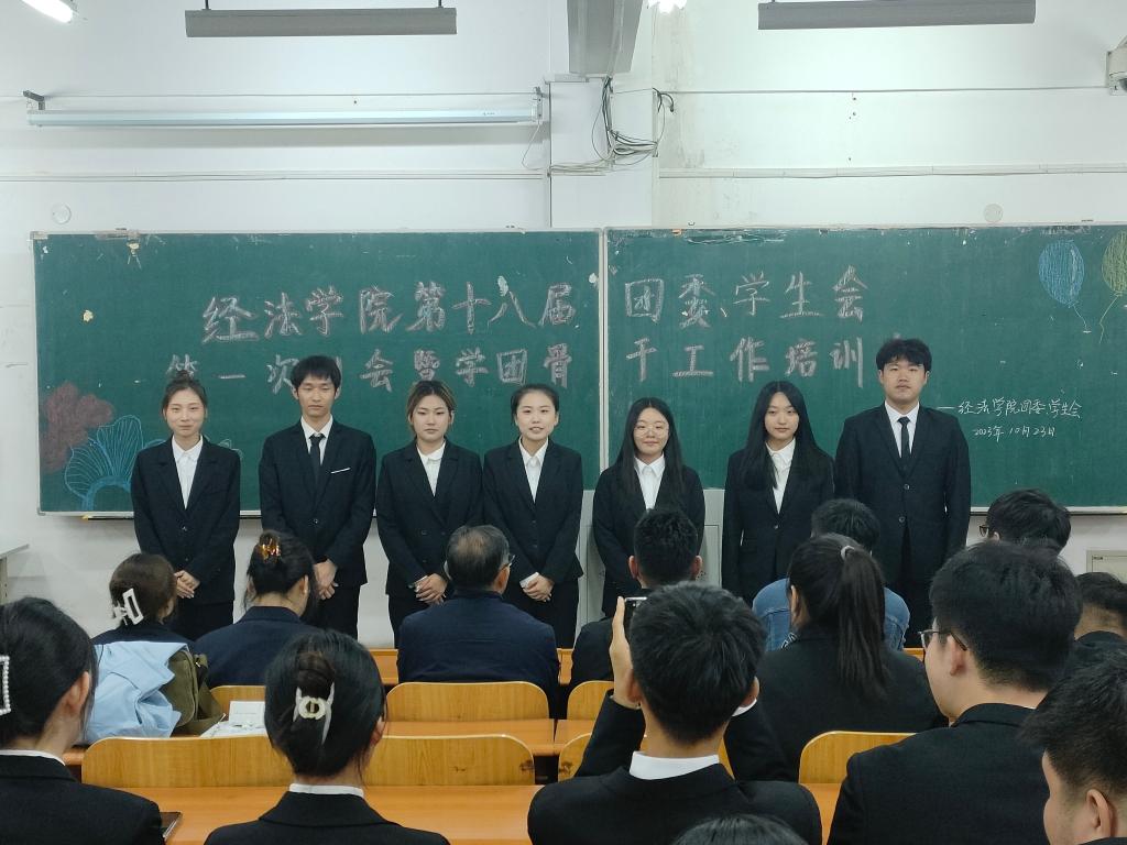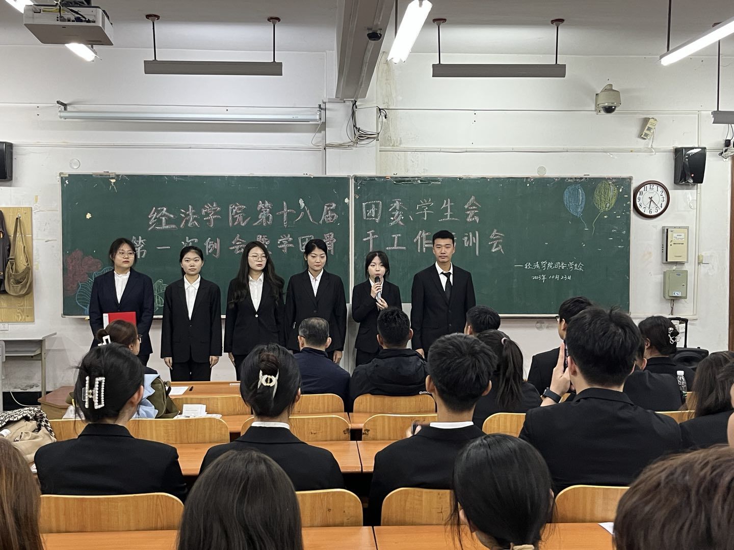 10月23日下午,经法学院第十八届团委、学生会第一次例会暨学团骨干工作培训会在博学楼C112举行。学院党委书记赵智博、党委副书记张国华、团委副书记张鹏飞出席会议,经法学院学生会全体学团骨干参加了本次会议。会议由经法学院第十八届学生会执行主席兼办公室负责人吴雨纯主持。