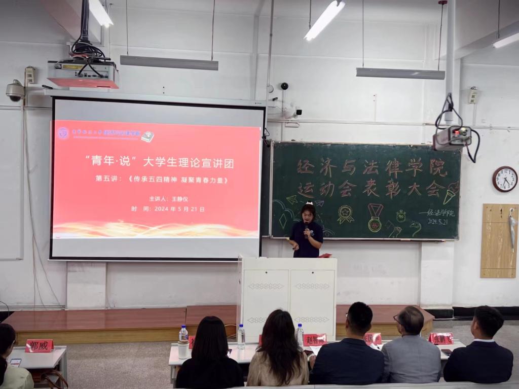 5月21日,经法学院于博学楼C102开展“青年·说”大学生理论宣讲。此次宣讲由经法学院“青年·说”大学生理论宣讲团成员、分团委副书记兼青年媒体中心负责人王静仪担任主讲人,经法学院近350名师生参加了本次宣讲会。