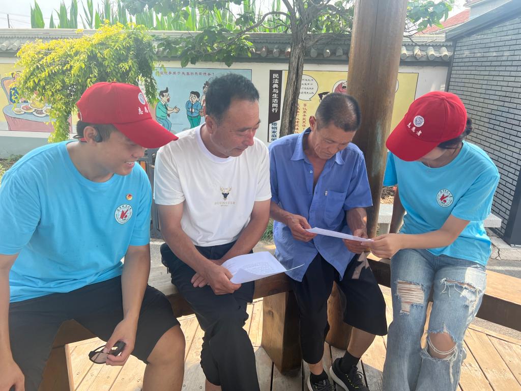 在开展调研活动的同时,“小红帽”青年志愿者们还积极发挥自己所学专业优势,为当地村民开展普法和防金融诈骗宣讲,发放宣传手册80余份。宣讲聚焦农民实际生活,宣讲结束后,团队成员热情回答了老乡们提出的各种金融与法律问题。
