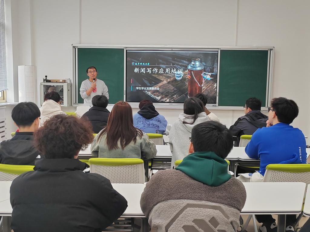3月7日下午,米兰学生学业发展委员会于明睿楼420举办新闻写作应用培训。培训邀请了学校党委宣传部新闻传媒中心副主任吕轶卓做专题培训,学生学业发展委员会全体成员参加培训。