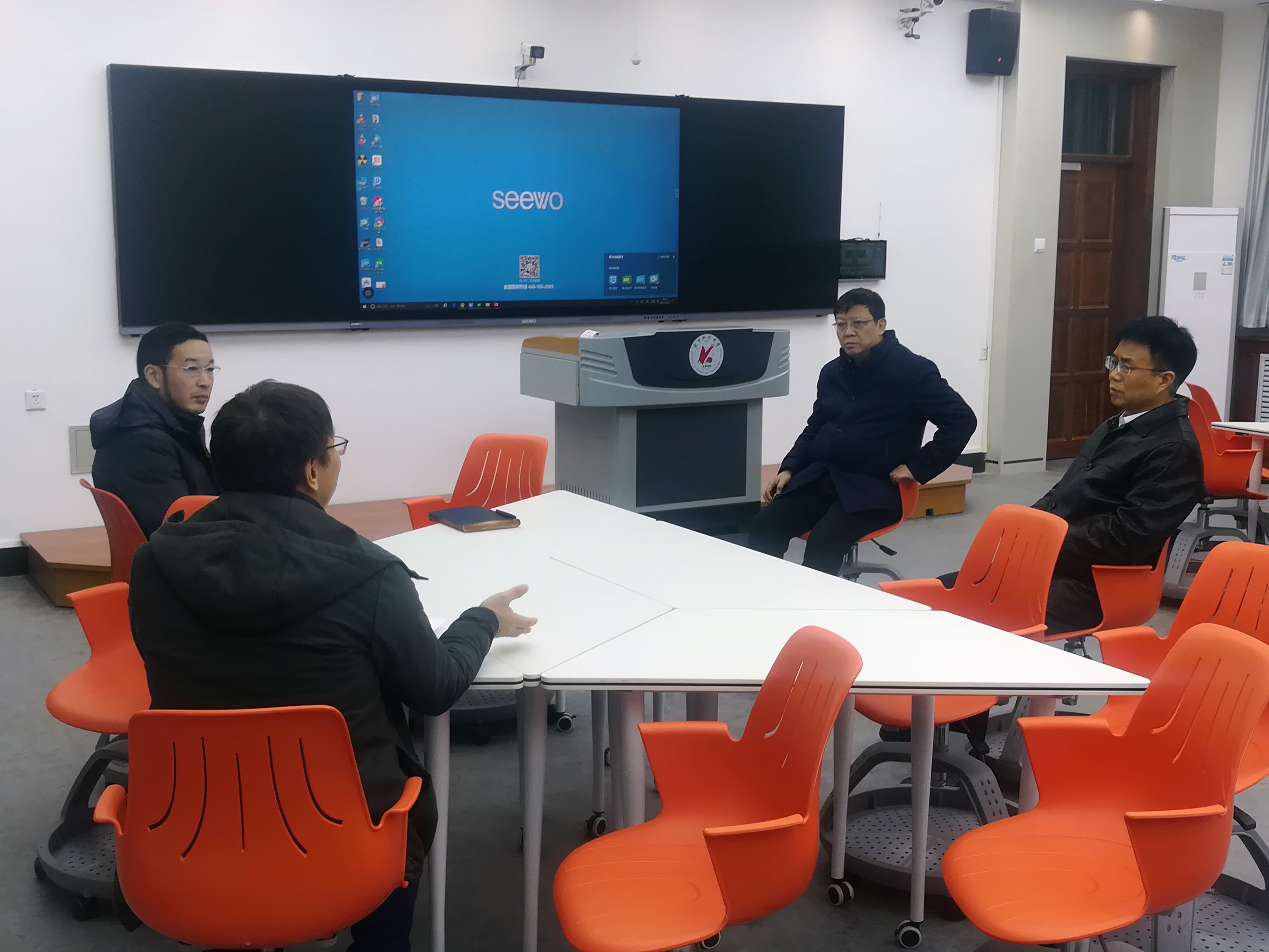 目前,学校已建成10间智慧教室,引进了雨课堂、超星智慧互动平台,科大讯飞网上阅卷系统平台;在22间大型合班教室安装了吊麦扩音系统;明德楼24间教室安装了希沃86寸触控一体机,覆盖率100%,博学楼更换100台多媒体电脑主机,并部署了桌面云系统;博学楼C区29间多媒体教室及9间智慧教室安装了万迅中控设备,实现了对投影机、电脑、扩音系统等设备的运行状态远程监控,并可以实现在线听课功能;新建传统多媒体教室37间。