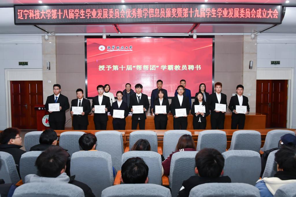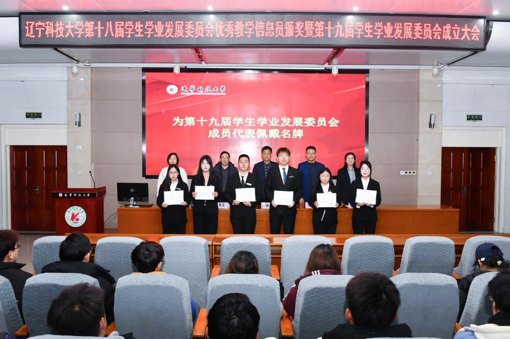 会上表彰了第十八届学生学业发展委员会优秀教学信息员、先进个人和“帮帮团”优秀教员,并为第十届“帮帮团”学霸教员颁发聘书。同时,宣读了第十九届学生学业发展委员会聘任名单,与会领导为新一届成员代表佩戴胸牌。
