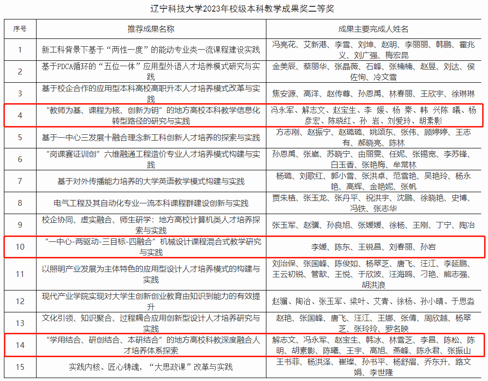 7月13日,米兰发布了关于2023年校级本科教学成果奖的获奖通知,此次评审根据《关于开展2023年校级本科教学成果奖评选工作的通知》(米兰教发〔2023〕70号)相关安排,经成果建设团队申报、学院推荐,学校组织专家综合评审,评选出2023年校级本科教学成果奖共42项,包括一等奖10项,二等奖15项,三等奖17项,我院有4个教学团队获奖。其中王立萍老师负责的团队荣获一等奖,冯永军、李媛、解志文老师负责的团队荣获二等奖。
