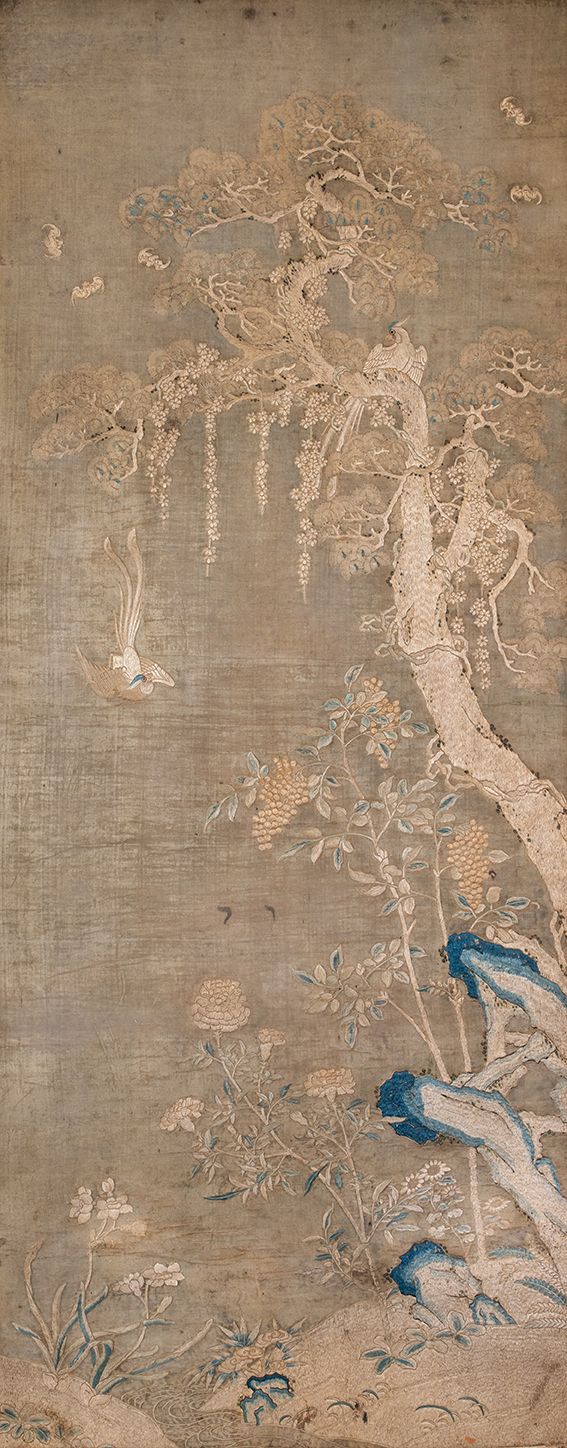 明 刺绣绶带鸟
