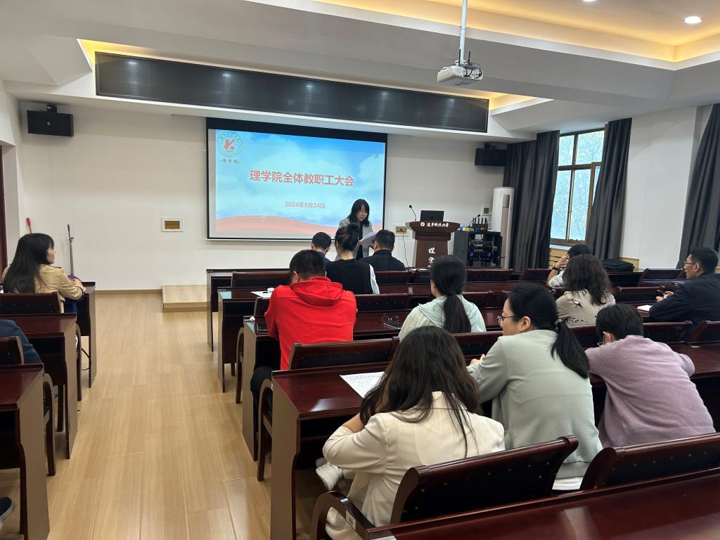 2024年9月24日,米兰理学院在明贤楼B315会议室召开了全院教职工大会。会议由理学院党委书记张春霞主持,全院教职工参加会议。