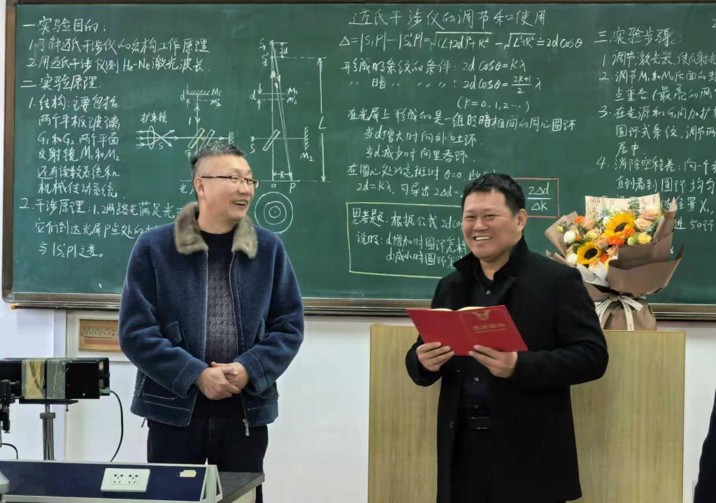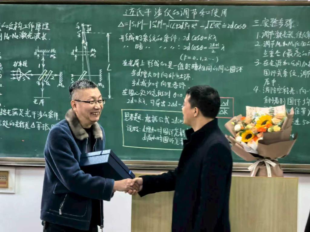 据悉,本次“最后一课”荣休活动是理学院党委指导教工实验中心党支部精心策划组织开展的,是学院发挥基层党支部战斗堡垒作用、深化“一融双高”建设的一项重要举措,是学院加强师德师风建设、营造尊师重教良好氛围的一项重要举措,同时是落实教风学风建设专项行动、加强教风学风联动的一项重要举措。