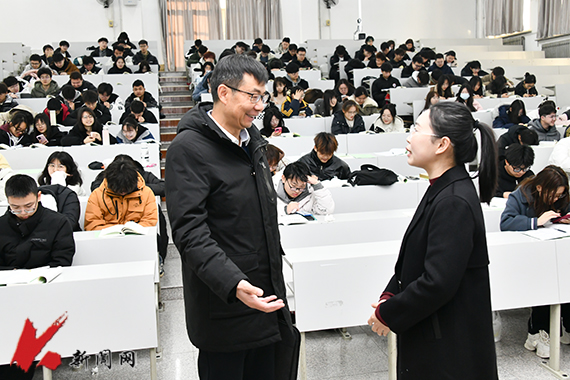 孟劲松走进博学楼A201教室,听取了牟影老师讲授的“思想道德与法治”课程。课堂上,牟影利用网络教学平台,通过将学生实时作答投屏、在线抢答等方式调动同学们的参与积极性。孟劲松对课程的互动性给予了高度评价。他指出,教师要积极推进线上线下混合式教学,增强师生互动,提升学生学习效果。高校承担着为党育人、为国育才的重要使命,思想政治理论课教师要加强价值引领,坚持用习近平新时代中国特色社会主义思想铸魂育人,引导学生成长为担当民族复兴重任的时代新人。