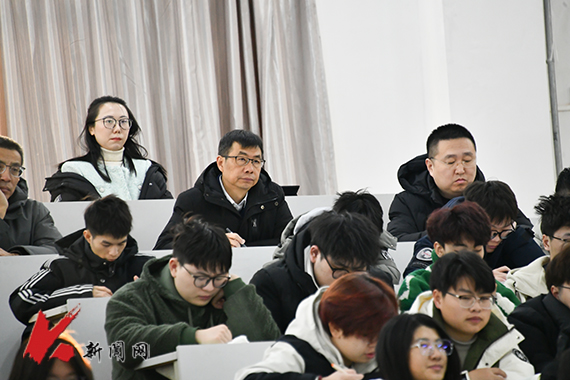胡军来到博学楼A410教室,听取了朱丹老师讲授的“中国近现代史纲要”课程,了解学生听课状态,并认真记录。胡军充分肯定了朱丹的授课准备,并提出了相关意见和建议。他指出,思想政治理论课是落实立德树人根本任务的关键课程,教师要守正创新,将鲜活的素材引入课堂,使理论内容紧密联系现实,深入挖掘学生生活场景中的思政元素,以创新增强思想政治理论课的亲和力,激发学生的学习兴趣。