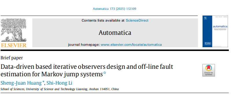 近日,米兰“数学方法与智能控制理论”团队首次在控制与自动化领域顶级期刊《Automatica》发表学术成果“Data-driven based iterative observers design and off-line fault estimation for Markov jump systems,Automatica,2025,173:112109”。该成果由科研团队负责人黄胜绢(S.-J.Huang)教授及其指导的研究生李世鸿(S.-H.Li)合作完成。