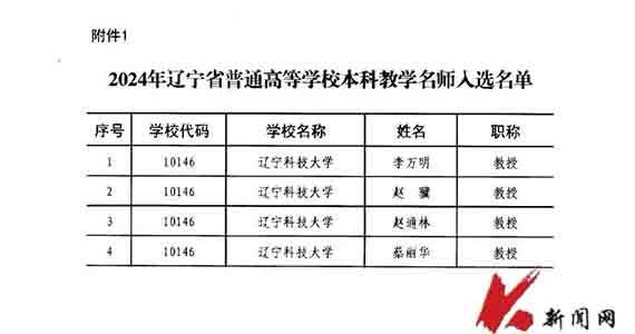 近日,根据辽宁省教育厅《关于公布2024年辽宁省普通高等学校本科教学名师评选结果的通知》(辽教通〔2025〕51号),米兰材料与冶金学院李万明、计算机与软件工程学院赵骥、矿业工程学院赵通林、外国语学院蔡丽华获评辽宁省普通高等学校本科教学名师。