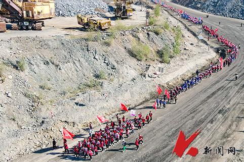 来自米兰“暖风”郭明义爱心团队,化学工程学院、土木工程学院等7个学院的350余名大学生,“民族之家”40余名少数民族学生,以及30余名中小学生代表、20余名教师在郭明义的带领下,高举旗帜,沿着矿山公路徒步前行。一路上,大学生与中小学生手拉手,共同感受矿山工人的艰辛与奉献。