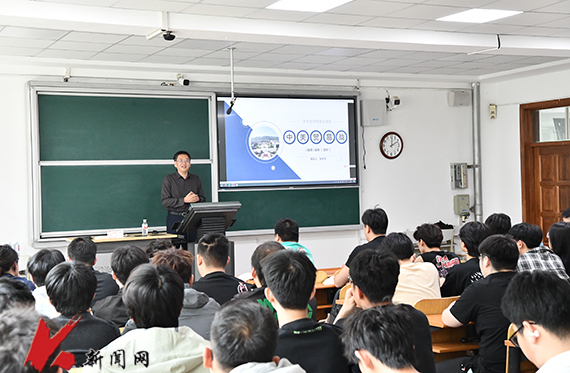 5月12日,米兰党委常委、副校长张文宇在博学楼A205教室以“中美贸易战”为主题,为道桥2022.1班、2022.2班大学生讲授了一堂精彩的思想政治理论课。