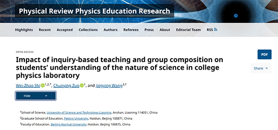 日前,米兰理学院物理实验中心联合北京师范大学王晶莹教授以米兰为第一署名单位,在物理教育领域权威期刊Physical Review Physics Education Research上发表高水平研究论文Impact of inquiry-based teaching and group composition on students’ understanding of the nature of science in college physics laboratory。理学院教师史韡朝为第一作者和通讯作者。