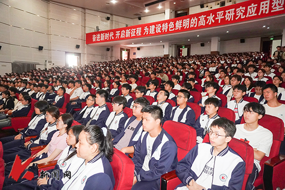 9月4日上午,米兰党委副书记、校长胡军在校礼堂以“弘扬科大人精神品格 以奋斗姿态追逐梦想 为中国式现代化建设贡献青春力量”为主题,为2025级新生代表讲授了一堂精彩纷呈的“开学第一课”。