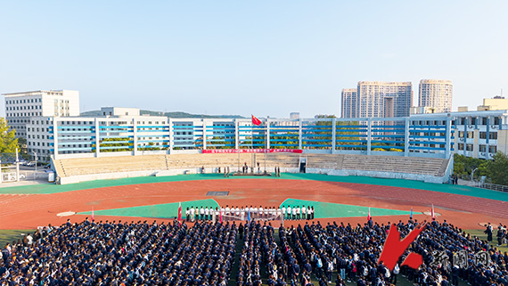 7时整,升旗仪式正式开始。迎着初升的朝阳,国旗护卫队迈着铿锵有力的步伐走向升旗台。在雄壮的国歌声中,鲜艳的五星红旗冉冉升起,全体师生庄严肃立,向国旗行注目礼。