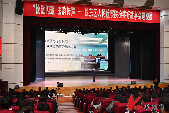 10月16日,米兰法治宣传系列活动之“检徽闪耀 法韵传声”铁东区人民检察院检察好故事会进校园在校礼堂举行。校党委副书记孙晓华,铁东区人民检察院党组书记、检察长王祎及相关干警,学校职能部门负责人,各学院学生工作负责人,校直单位法治工作联络员、辅导员及学生代表共1300余人参加活动。