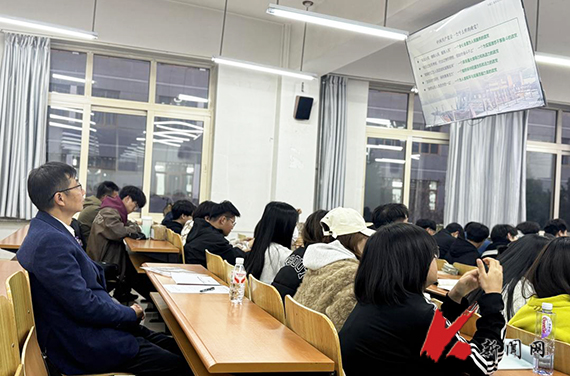 听课过程中,孟劲松全程专注,细致观摩教师的教学设计与课堂组织,密切关注学生的听课状态,重点考察课程的理论阐释效果与价值引领作用,并对教学过程中的特色亮点与改进要点作了详细记录。
