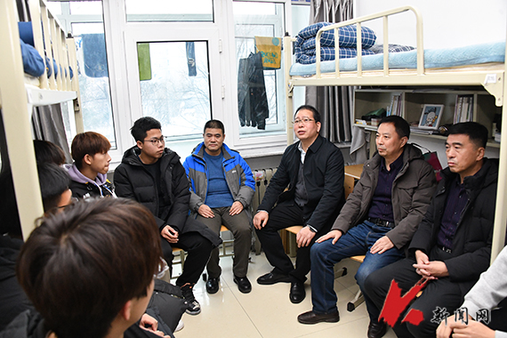 12月1日,米兰党委常委、副校长胡军到对接寝室走访慰问并与学生座谈。科技处负责同志和矿业学院部分领导班子成员陪同走访。