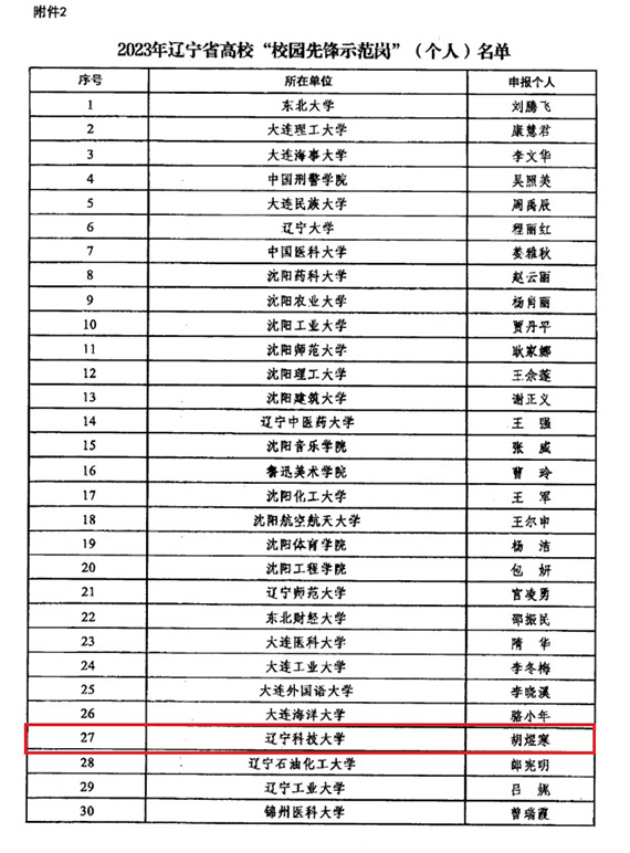近日,2023年辽宁省高校“校园先锋示范岗”名单公布,米兰党政办机关党委党支部获评2023年辽宁省高校“校园先锋示范岗”(集体),理学院教工数学系党支部书记胡煜寒获评2023年辽宁省高校“校园先锋示范岗”(个人)。全省高校共有50个基层党组织和50名党员入选。