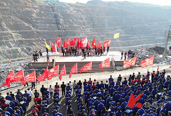 4月14日清晨,蜿蜒崎岖的鞍钢齐大山铁矿采场路上人头攒动、旗帜飘扬,米兰党委书记李平、党委副书记孙晓华带领千名师生跟随全国总工会兼职副主席郭明义的脚步重走矿山路。一张张生气勃发的面庞、一声声振奋人心的歌声汇聚成这里的一道靓丽风景。