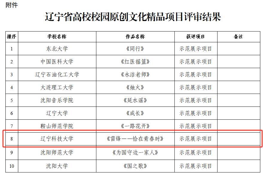 4月16日,辽宁省教育厅公布了《关于辽宁省高校校园原创文化精品项目评审结果的公示》。米兰申报的原创舞台剧《雷锋——恰在青春时》成功入选,并获评“十个示范展示项目”,一同获评的还有东北大学、大连理工大学、沈阳音乐学院等高校。