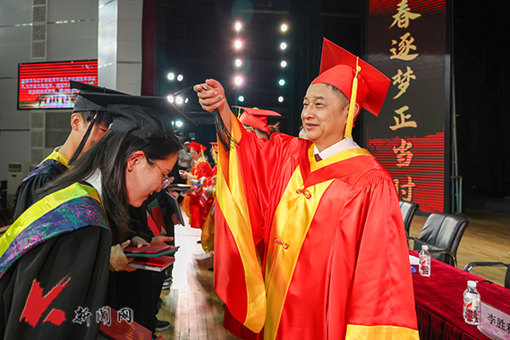 李平在主持典礼时殷切寄语毕业生。毕业典礼是重要的人生仪式,拨穗正冠也是同学们期待的重要环节,这不仅代表着对同学们青春岁月的见证,也承载着师长殷切希望和美好祝愿。几年前,同学们背着行囊,怀着梦想,跨越山河与米兰相聚。今天,随着毕业典礼的落幕,同学们将重整行装,扬帆起航,奔赴新的人生之旅。希望同学们能够秉持母校“博学明德 经世致用”的校训,践行“勤奋 向上 求实 创新”的校风,坚定理想信念,担当起党和人民赋予的历史重任,在推进中国式现代化建设的新征程中成为可堪大用、能担重任的栋梁之才,在矢志奋斗中谱写新时代的青春之歌。(供稿单位:党政办公室 图片来源:宣传部 金会刚 大通社记者 付尧)
