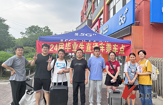 学校根据毕业生们的乘车需求,制定车辆的发车时间、行车路线,在校园博雅广场和龙源公寓分别设置乘车点,毕业生可根据住宿情况就近乘坐直通车到达鞍山火车站和高铁站。在乘车点,学生工作处的老师和学生志愿者时刻等待为毕业生们提供搬运行李、指引乘车、合影拍照等“送站”服务。毕业生们带着满满的行囊和母校的殷切期望,踏上了人生新征程。
