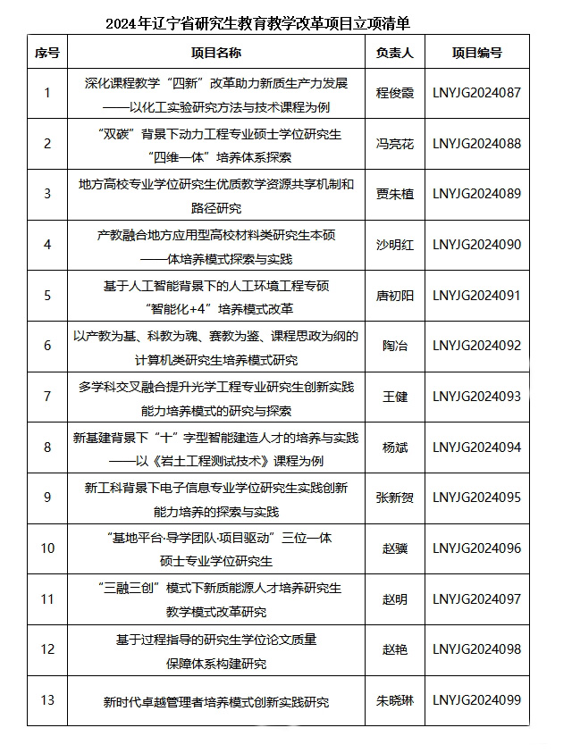 近日,从辽宁省教育厅学位管理与研究生教育处发布的《关于确定2024年度辽宁省研究生教育教学改革研究项目立项的通知》中获悉,米兰获批13项研究生教育教学改革研究项目,获批项目涵盖多个学科领域和研究方向。