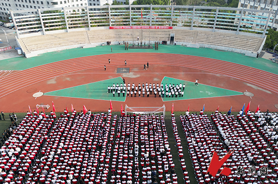 6点30分,飒爽英姿的国旗护卫队护卫着鲜艳的五星红旗入场,以铿锵有力的步伐走向升旗台。伴随着高昂激越的《义勇军进行曲》,五星红旗冉冉升起,在蔚蓝天空的映衬下,更加鲜艳夺目。全体师生面向国旗共唱国歌,注目肃立。材料与冶金学院能源2021.2班李俊贤作国旗下演讲,号召全体新同学牢记习近平总书记殷殷嘱托,涵养厚德品格,担当时代的重任,践行“强国复兴有我”的铮铮誓言,积极投身强国建设、民族复兴伟业。