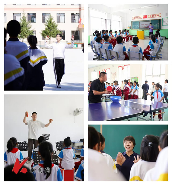 仪式后,米兰随行的教师团队为桑林镇中心学校的学生们带来了一场别开生面的“浸润体验”。艺术学院院长李囝、体育部副主任曲博等教师和参加活动的米兰学生,分别带领桑林镇中心学校中学部、小学部5个班级,以及社团100余名学生代表进行了“体育美育浸润”主题教学示范公开课与活动指导,通过乒乓球、啦啦操、声乐、播音、曲艺等体育和艺术形式,将爱国主义教育、团队协作与创新能力培养融入体育运动和美育活动中,帮助学生们在竞技、表演的同时收获成长和快乐。一时间,操场上、课堂中欢声笑语,学生们积极参与,努力为团队增光添彩,每一次“活动展示”都得到了现场师生的热烈掌声。