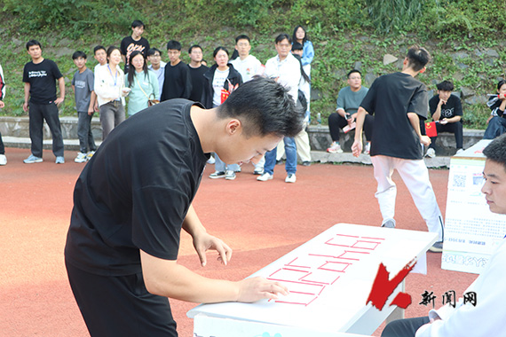 活动中,同学们以班级为单位,在集合处领取纪念卡片和小国旗,写下对祖国的祝福话语后,便沿着规定路线开启“三走”。在主体育场“75年中国”打卡点,同学们通力合作,利用身体快速准确摆出“中国”字样,挥舞着手中的旗帜,齐声高喊“我爱你中国”。在东体育场“75年时光”打卡点,同学们齐心协力,利用火柴快速准确摆放出“1949”和“2024”字样,表达对祖国母亲75岁生日的祝福。在博雅广场“75年路程”打卡点,同学们双腿夹着气球沿着特定路线——“75”行走,在运动中感受祖国75年栉风沐雨的光辉历程。在工业园凉亭“75年知识问答”打卡点,同学们围绕党史、新中国史和学校历史沿革等进行答题,他们在为新中国所取得的辉煌成就而感到自豪的同时,也深刻领悟到新中国从百废待兴到如今繁荣富强,是党和人民共同奋斗的结果。“三走”途中,同学们纷纷拍照打卡,定格米兰美景,留下美好祝愿。