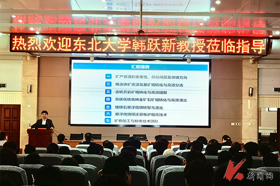 韩跃新围绕我国矿产资源的重要性以及存在问题和突破方向、氢基矿相转化与高效分选技术及工程示范开展报告,分享了科研团队近十年的研究成果,发明了复杂难选铁矿石“预氧化-蓄热还原-再氧化”多段矿相转化新技术,介绍了该技术在含钒页岩、高碳低硫低砷金矿、氰化尾渣及锂辉石等难选矿产资源中的应用研究,并取得了显著的经济效益和社会效益。