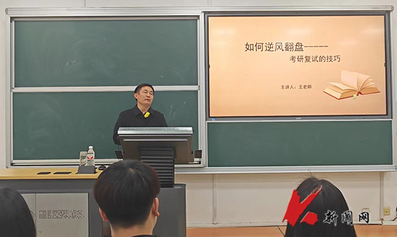 会上,学院党委书记王会立为学生作题为《如何逆风翻盘——考研复试技巧》专题培训。他从“如何理解考研”与“如何理解复试”两个问题切入,引发同学们的思考,让同学们意识到研究生复试才真正进入白热化阶段,进而通过对比八类最受青睐与最易淘汰学生,给同学们生动形象地列举复试实例,提醒同学们在面试过程中保持自信、礼貌、谦虚和诚实的态度。同时,王会立也对复试存在的“陷阱”与常见问题给同学们做了细致的讲解,帮助同学们排忧解难。王会立还与同学们分享了“逆风翻盘的五个法宝”,助力考研学子一战成“硕”。