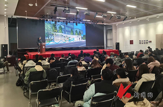 讲座中,王天介绍了城市高质量发展下城市更新设计的思考,并从城市品牌、城市美学的角度如何助力城市更新设计,阐述了城市设计、城市体验、城市更新的关系,讲述了城市更新的内容、设计理念和发展思维。王天分享了青岛市崂山区城市更新改造项目、永汉商业区更新改造项目、惠州市龙门县乡镇农村“百千万工程”更新改造项目等案例,并与学生进行了交流。
