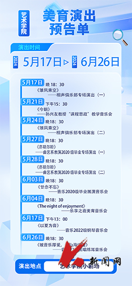 本次演出季共设曲艺、声乐、器乐3个模块,将呈现9场精彩纷呈的演出。这些演出不仅汇聚了艺术学院师生的心血和智慧,更体现了学院在美育教育方面的深厚积淀和不断创新的精神。演职人员由包括艺术学院在内的多个学院学生组成,他们通过精心准备和排练,将为广大师生带来一场场视听盛宴。