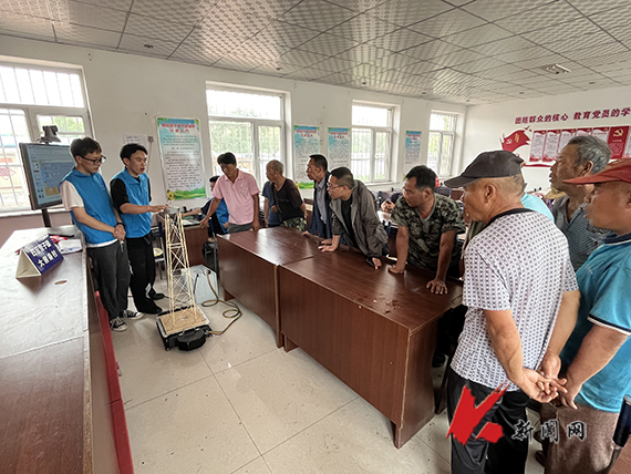 在凌源市水务局水利工程质量监督负责人王庆的带领下,团队依托专业知识在大房身村党群服务中心,通过理论讲解和试验演示向村民们生动地讲述了灾害预警和防震减灾知识,以及遇到突发情况自我保护的技巧。