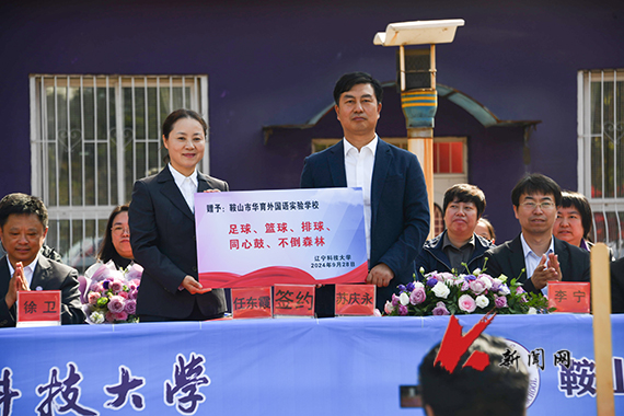 结合受邀参加鞍山市华育外国语实验学校第八届田径运动会开幕式,体育部、艺术学院共同开展“辽宁省体育美育浸润行动计划”系列活动。开幕式上,体育部党总支书记、主任苏庆永介绍了学校近年来开展辽宁省体育美育浸润行动计划情况,并与鞍山市华育外国语实验学校党委书记任东霞签订共建合作协议;艺术学院党总支书记李宁与鞍山市华育外国语实验学校校长徐卫为“米兰体育美育浸润行动计划实践基地”揭牌。苏庆永代表学校向华育外国语实验学校捐赠篮球、排球、足球、同心鼓、不倒森林等体育器材、教学用品。