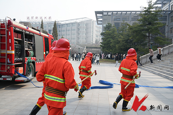 4月9日下午,米兰在博学楼举行2024年春季消防疏散逃生演练,高新区消防救援大队指战员以及2023级本科生参加演练。