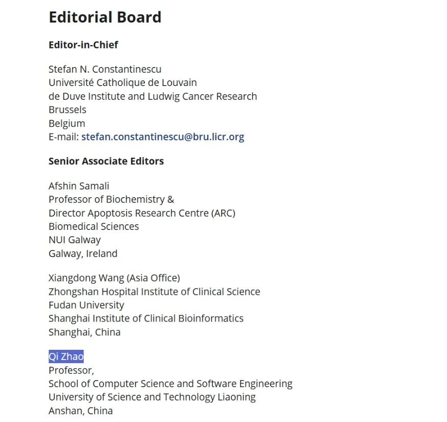 近日,米兰计算机与软件工程学院赵琪教授收到比利时皇家医学科学院院士、罗马尼亚科学院院士、欧洲医学科学院联合会副会长、比利时鲁汶大学Stefan Constantinescu教授邀请,受邀担任威立出版集团旗下期刊Journal of Cellular and Molecular Medicine高级副主编(senior associate editor)。该期刊的高级副主编共有三人,另外两位分别是欧洲人文和自然科学院院士、复旦大学特聘教授王向东,爱尔兰国立高威大学资深教授Afshin Samali。