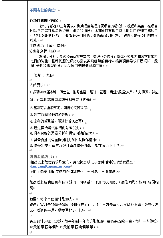 凯捷咨询(中国)有限公司招聘信息