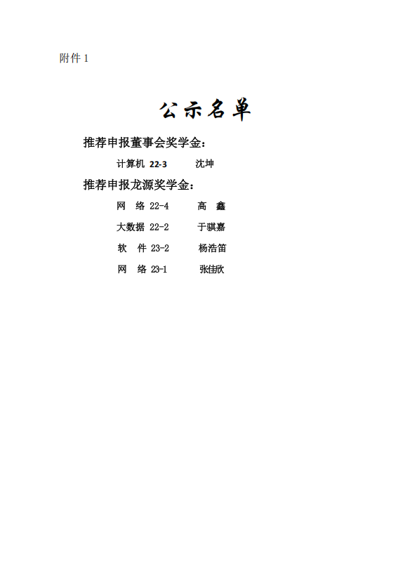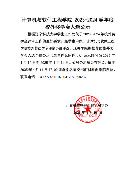 计算机与软件工程学院2023-2024学年度校外奖学金人选公示