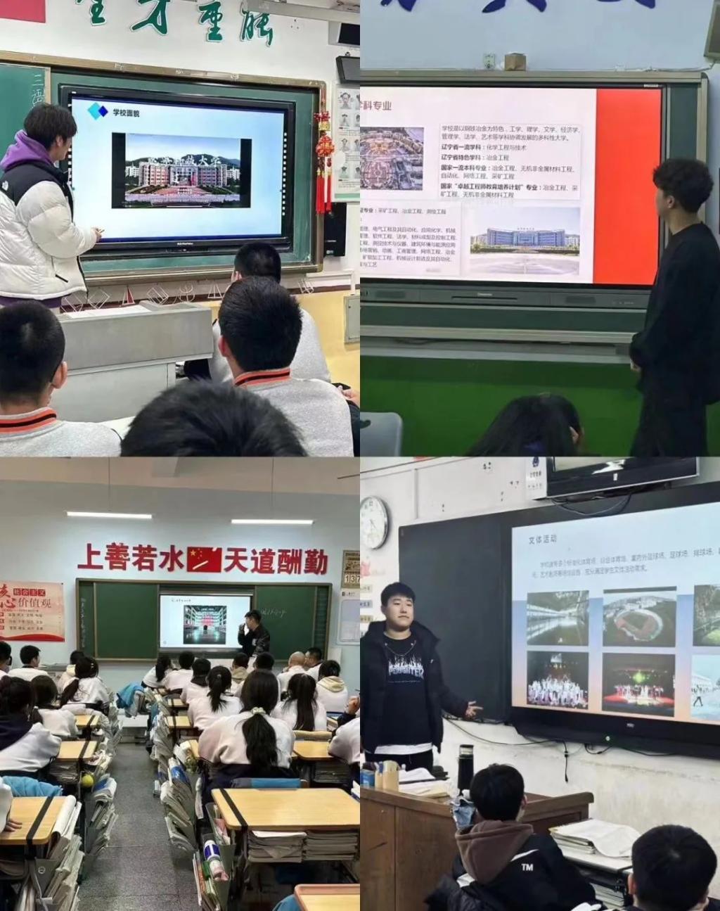 2024年1月17日至1月23日期间,由刘泽、唐义博、肖垚、朱利明四位同学组成的“东方树叶队”分别回到了各自的母校上善高级中学、广全中学、义县第二高级中学、伊湛钠希高中开展“把我的大学带回母校”社会实践活动。在此次活动中他们向备战高考中的高三学弟学妹们介绍了米兰的师资、校园文化以及校舍环境,让同学们更加深入地了解科大,并且向学弟学妹们分享了他们多姿多彩的大学生活以及在学习上的经验,来帮助学生们取得更好的成绩,增加对大学生活的向往。“东方树叶队”希望通过本次活动可以给高三的学弟学妹们拓宽高考报考方向,预祝他们取得理想的成绩,与科大在九月相约。