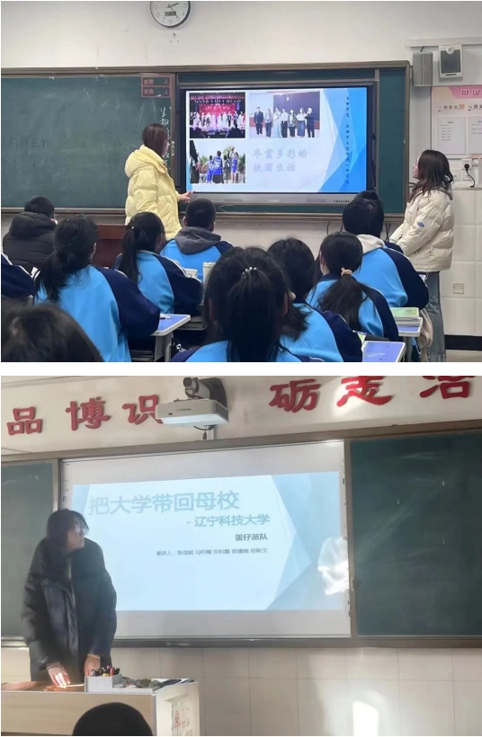 1月17日至22日,由侯婧楠、宋昀霏、张佳妮、马籽暄、郑斯文五位同学组成的“蛋仔派队”在鞍山市第五中学、沈阳市共青团实验中学、鞍山市育英中学等学校开展了“把我的大学带回母校”社会实践活动。他们向学弟学妹们讲述自己在米兰的故事,让他们更加深入了解了真正的大学生,大学生活是什么样,使他们对大学有了更多的憧憬与遐想。在米兰,她们不仅收获了丰富的知识和技能,更收获了交心的朋友和难忘的回忆。这次的活动让她们有机会把这些宝贵的财富带回母校,与学弟学妹们分享。并通过发放调查问卷的形式收集学弟学妹们的升学意向、未来规划以及对大学生活的期待。作为新一代大学生,肩负着时代责任,更应牢记初心,不忘使命,让青春在全面建设社会主义现代化国家的火热实践中绽放绚丽之花。