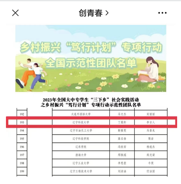7月14日,共青团中央青年发展部公布了2023年全国大中专学生“三下乡”社会实践活动之乡村振兴“笃行计划”专项行动示范性团队名单,米兰土木工程学院“青春梦想队”成功入选。