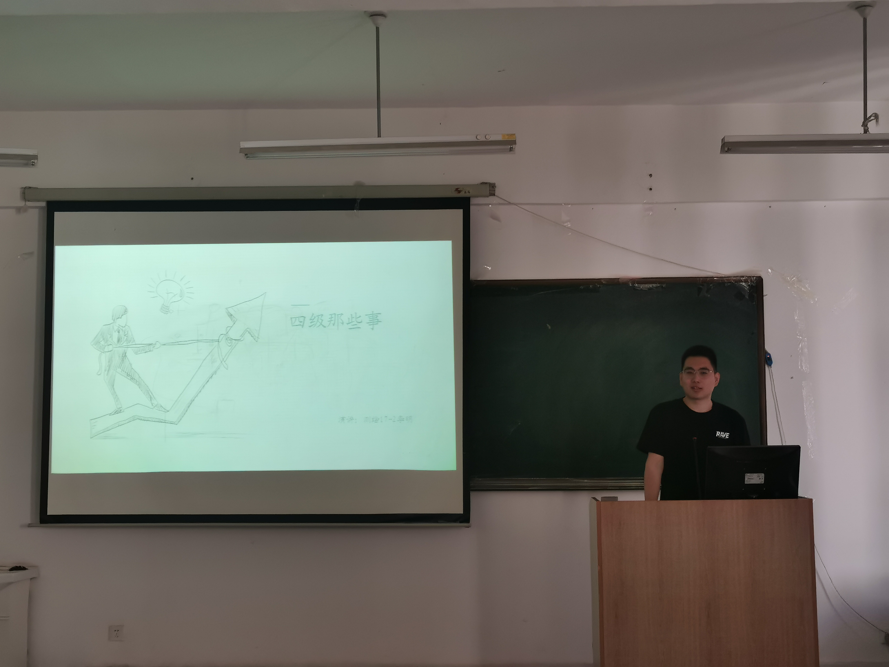会上,李明畅谈了自身英语学习由高考入学近似零基础的44分,到经过不懈努力顺利通过四级的心路历程及总结的备考体会,并围绕通过四级对提升同学们学业认同感和自身获得感的积极作用进行讲解。他在提到“对于我,四级的准备是艰苦的,开始背单词和刷模拟就像‘天书’一样,但随着不断地坚持,我发现自己也在逐渐的爱上它,当单词量由空白到逐渐充盈,再到单词册顺利拿下,我感觉自己的信心也在与日俱增”时,眼中不禁闪现出光芒。李明在备考中,将试卷的各种题型分类并逐一摸索答题技巧,做到题型有专攻、方法有专效,并结合自身在考场遇到的实际情况介绍了应对技巧。