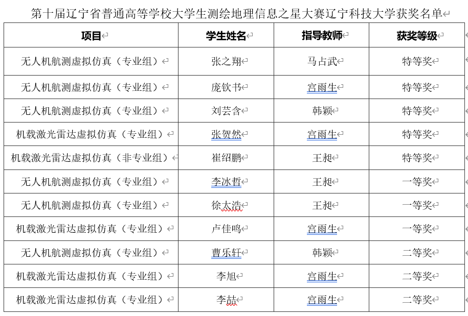 第十届辽宁省普通高等学校大学生测绘地理信息之星大赛米兰获奖名单
