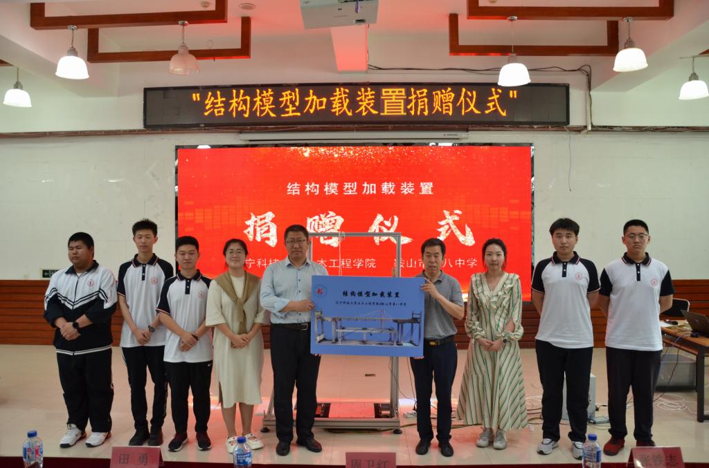 鞍山市第八中学师生首先来到校史馆参观,在校史馆宣讲员的带领下,依次观览了“亲切关怀”“校史回顾”“办学成果”“校企合作”“新校区建设纪实”“人物”6个板块,通过了解米兰从1948年建校至今70余年的光辉历程,切身感受米兰厚重的历史积淀、丰硕的办学成果。交流中,土木工程学院院长周卫红向来访师生介绍了学院简况、专业特色和亮点、行业发展现状、毕业生职业发展前景和优势、学院招生政策等。随后,鞍山市第八中学师生代表来到大学生活动中心参加米兰土木学院科技活动周活动,现场观摩米兰2024年结构设计竞赛决赛。活动中,学院参赛师生与第八中学师生展开交流,围绕“弘扬科学家精神 激发全社会创新活动”主题,对学生如何开展科研训练、社团活动等方面进行深入探讨。土木工程学院院长周卫红代表学院向鞍山市第八中学捐赠结构模型加载装置。