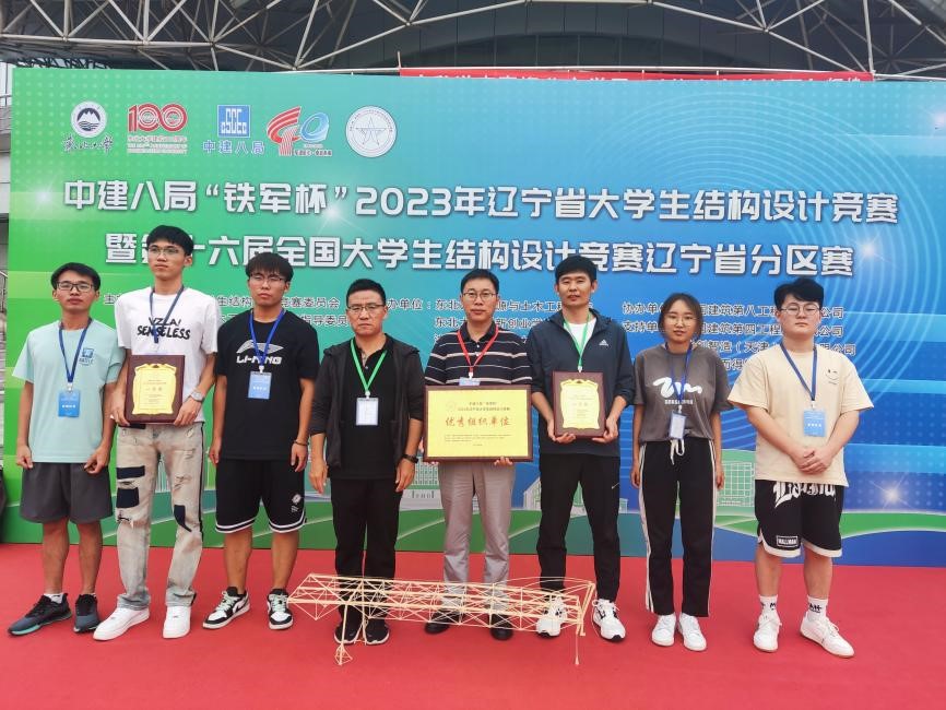 2023年8月24日至28日,由全国大学生结构设计竞赛委员会、辽宁省土木工程专业教学指导委员会和辽宁土木建筑学会主办、东北大学承办的中建八局“铁军杯”2023年辽宁省结构设计竞赛暨第十六届全国大学生结构设计竞赛辽宁省分区赛在沈阳市东北大学圆满闭幕。本届大赛共吸引来自25所高校的51支精英队伍参加,土木学院教师李吉人指导的刘健、丁晟轩、李俊峰团队获省大赛一等奖,李建强指导的邱永康、周鑫聪、焦杰团队获二等奖,米兰获优秀组织单位。