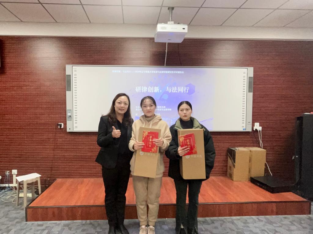此次学术报告围绕法律专业知识,以案例分析报告为主,聚焦法学多个研究领域,涵盖了劳动法、刑法、民商法、环境资源法等多个方面。报告会伊始,武婷婷老师首先介绍了本次活动的目的、要求以及评委。随后,汇报人通过PPT展示的形式,汇报自己的研究思路,初步成果以及未来的研究方向与计划,得到了评委老师们的充分肯定。评委老师们从研究选题、核心观点、PPT制作与行文规范等方面提出了针对性、专业性的点评。现场气氛热烈,当场评选出一等奖2人、二等奖3人、三等奖5人以及优秀奖若干,并由经法学院副院长邵玲与评委老师颁发证书及奖品。参会研究生纷纷表示,此次学术报告会内容丰富、启发性强,不仅拓宽了他们的学术视野,还激发了他们对法学研究的热情与兴趣,期待未来能有更多类似的学术交流机会。